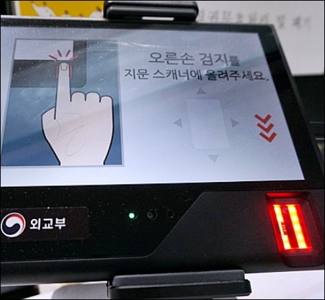 여권 방문 시, 신분증을 확인하고, 양손 검지 지문을 스캔하고, 얼굴을 스켄하고, 사인하면 모든 절차가 완료됩니다.