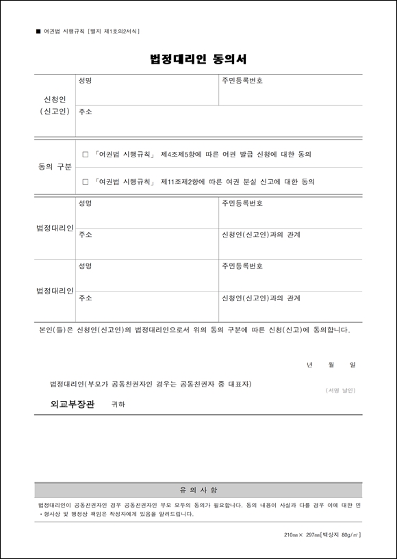 - 여권발급신청서