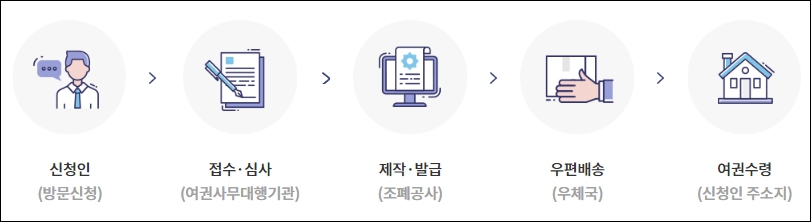 여권 신청시 구청등에 1회만 방문하시고, 여권 수령은 우편으로 집이나 사무실에서 편않게 받아 보실 수 있습니다.