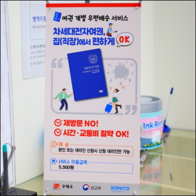 각 지자체별로 다르지만, 보통의 경우 여권 개별 우편 배송 서비스를 하고 있습니다. 우체국과 외교부가 협업으로 진행하기 때문에 안전한 배송이 가능 합니다. 이용료는 5,500원 입니다.