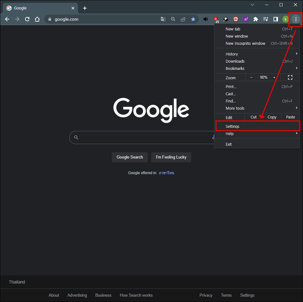 오른쪽 점3개를 눌러주시면, 아래와 같은 영문 메뉴가 나오는데, 이때 Settings 메뉴를 선택 합니다.
